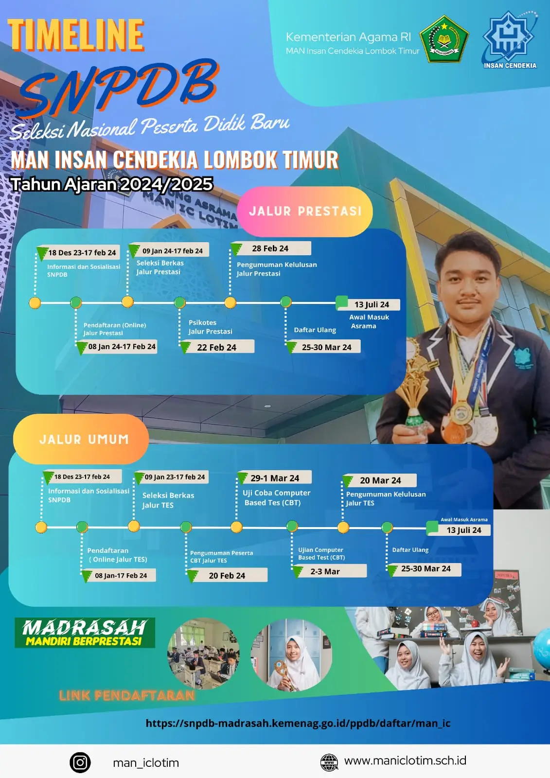 - pengumuman kelulusan dapat diakses melalui aplikasi SNPDB MANIC dan Portal Kementerian Agama melalui https://snpdb-madrasah.kemenag.go.id serta melalui portal Madrasah MAN Insan Cendekia Lombok Timur https://maniclotim.sch.id